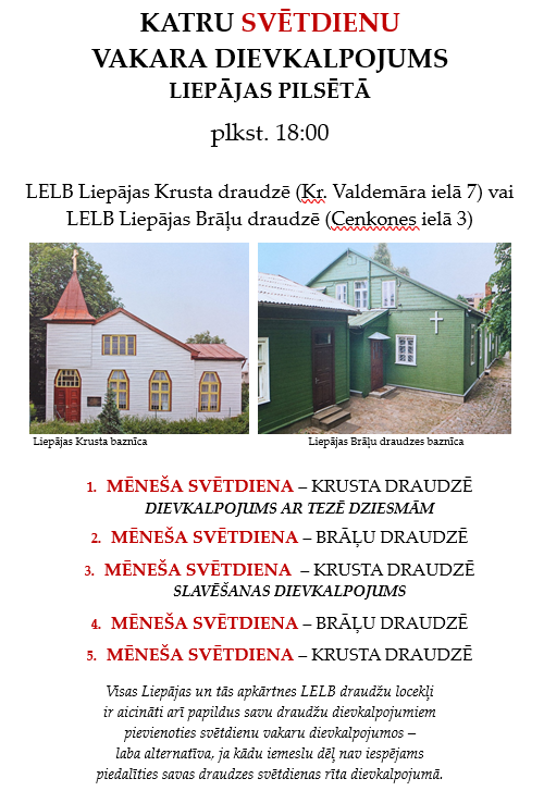 Par svētdienas vakaru dievkalpojumiem Liepājā